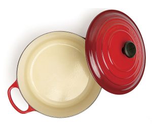 If you need something that works well for sautéing, browning, frying or searing, these are colorful, classic pieces that you can easily move from the stovetop to the dining table. If you get a covered piece, you can also stew, braise, slow-cook, or roast meat. They’re famous for their excellent heat retention, and they heat evenly and slowly. The coating is durable and won’t react with any potentially acidic ingredients, and they’re also corrosion-resistant. The only downside is that they’re heavy, and their small handles can make moving them from the stovetop to the oven a bit difficult.