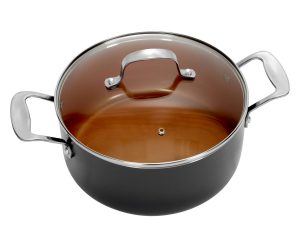 The GreenPan 12 piece set from their Rio collection has 8″ and 9.5″ open frypans, a 9.5″ covered saucepan, 1 qt., 2 qt. And 3 qt. covered saucepans, as well as a 5 qt. covered casserole. When you consider the price, you get a lot for your money, especially with their material choice. The Thermolon ceramic nonstick is where the GreenPan healthy ceramic claims come from. It’s made with no cadmium, no lead, no PFOA, and no PFAS. Even if you happen to overheat your pan, it won’t release any harmful fumes, nor will it blister or peel. You get a heavy-gauge construction that nets reliable results in terms of cooking, as well as incredible heat conduction. The GreenPan nonstick is made with stay-cool Bakelite handles that are ergonomically designed to provide a comfortable and relaxed grip.