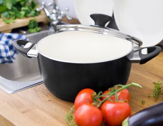 Ceramic and nonstick guarantee good heat distribution and easy cleanup