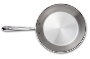 Cladding is used to describe the metal layers that are fused to make up the cookware. For example, if you have the inner and outer layers of a pan made from stainless steel, the inside might be copper or Aluminum. It could also be a conductive or magnetic material. Clad can also refer to a material being added to a pan’s bottom, to enhance heat transfer.