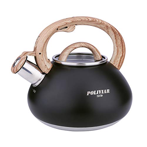 There are some possible negatives to this kettle. It’s large: at 2.75 quarts, you could host a tea party for ten. If you plan on hosting a lot with the kettle, this will suit you perfectly. But if you’ll mostly be making tea for your family, or even just yourself, the size of the kettle makes it less efficient to heat than if it were smaller (though the huge base of close to 10 inches does balance this out somewhat). Plus, it’s really heavy and demands a rather high pouring angle. It only comes in one finish. And the whistle is gentle, which is ideal if you’ll be hanging out in the kitchen while you wait for it to boil, but not so perfect if you’re going to be waiting elsewhere in the house.