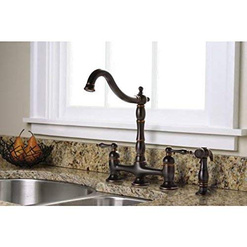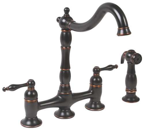 This bronze and Parisian style two-handle faucet is amazing for those who like a sophisticated kitchen. It has a two-tone bronze finish which makes it an excellent addition for those who like decorative touches in their kitchen. The most important feature which sets this faucet apart from the others is the two-handle design and the matching sprayer it comes with.