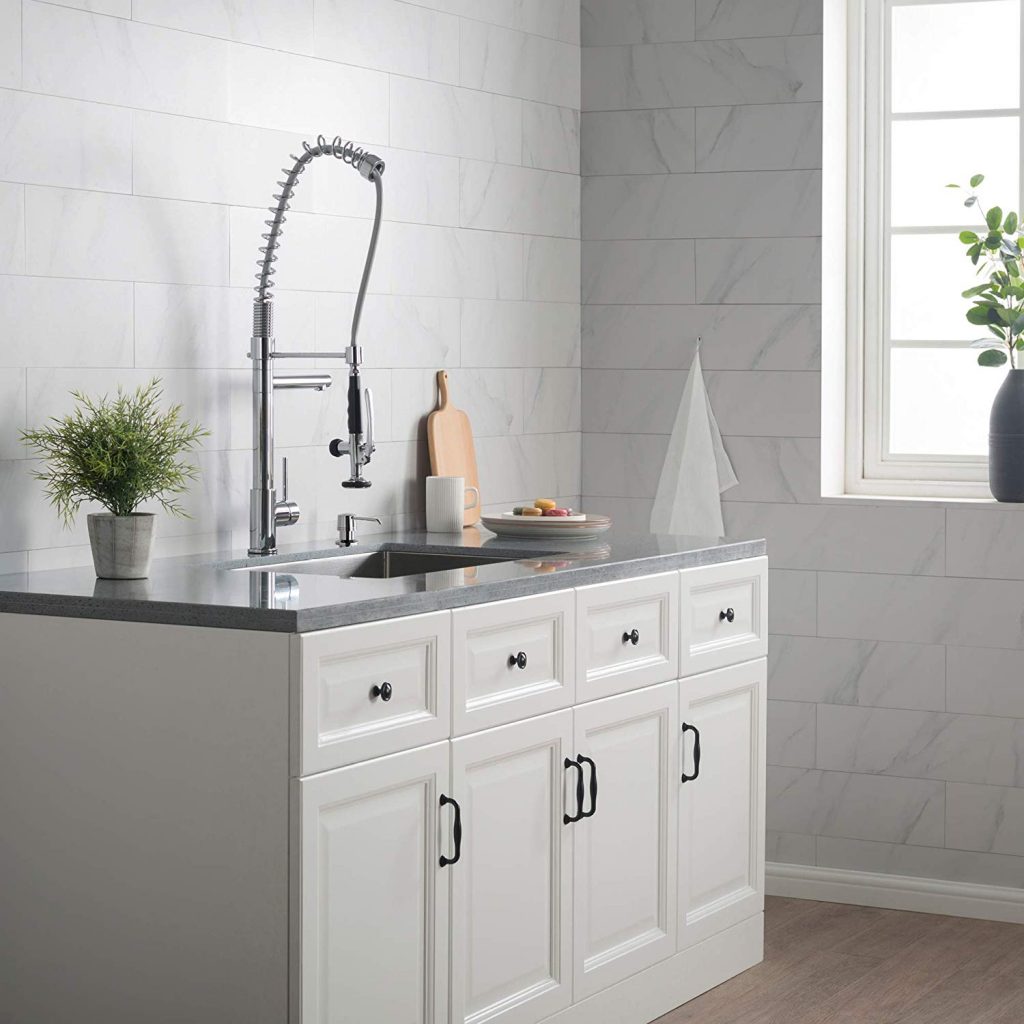 Asides from being well-constructed, this Kraus kitchen faucet is very powerful too. It has a great pre-rinse spray. Even the ceramic cartridge was rated to last more than 500,000 cycles. Amazing, right? If you don’t have time or knowledge to mount a kitchen faucet, you should definitely consider this one. It comes with a completely mounting hardware. So, it is safe to say that this faucet is an excellent choice for those who want to get the job done without breaking a sweat for it.