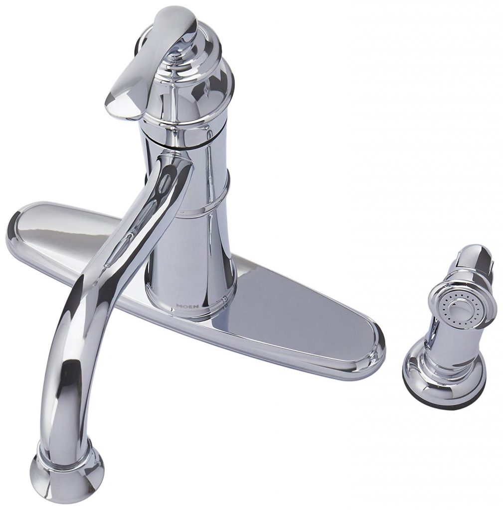Are you tired of the mess in your kitchen each time you are washing dishes? Well, we have to suggest the Moen Wetherly kitchen faucet. This one features an incredibly helpful high-arc and it has a side spray too. All in all, the Moen Wetherly is a kitchen faucet you don’t overpay for, and yet, you get an incredible quality. If you want to get the best for your money, the Wetherly is the way to go.