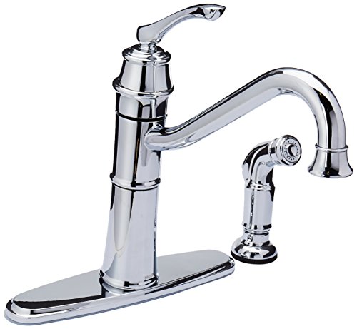 The Premier Charlestown kitchen faucet might be an excellent choice for you if you like your kitchen to have a luxurious touch. It has cross-pieces and details giving it a Victorian look. However, asides from its elegant design, there is much more to be discovered about this faucet. Features-wise, it is made from high quality materials. For instance, all of the casing parts are made of metal. This makes it both sturdy and durable on the long run. The cartridge on the other hand, is made from ceramic which is another famous kitchen hardware durable material.