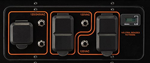 We concluded it’s powerful, we concluded it’s far from expensive, and we concluded it’s safe. But those are far from the only things that are great about the generator. There’s a good selection of outlets, too. For example, you have one 120V 30A locking outlet, as well as a 120V 30A RV outlet, and a household outlet, 120V, 20A. It’s equipped with Volt Guard, a technology that protects your valuable electronics from an overload. You won’t be having any voltage spikes, and there’s also a voltmeter that gives you exact readings of the power output.