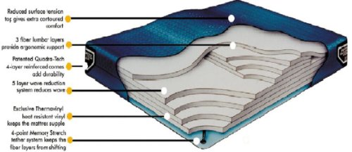 When you’re looking around for an ideal waterbed mattress, we recommend searching for a model which provides extra lumbar support. In general, these types of waterbeds feature very short layers made from fiber. The layers of fiber offer great lumbar support. The thickness of fibers for a specific product may depend on the brand. Some brands have different fiber thickness than others.