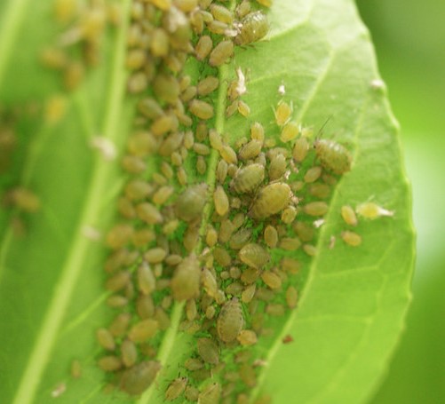 Aphids are very small parasites which feed on the juices of many plants. You might not be able to identify when the infestation is not severe but once they are in large numbers, you will see greyish matter on the gourd leaves. They produce a sticky residue and cause the plant and its fruits to become deformed.