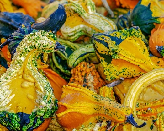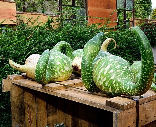 Some of the edible species include cushaw, young luffa, butternut squash, Hercules war club, golden acorn, and festival squash among others. Ornamental varieties include Turk’s Turban, Harlequin, Dinosaur, Speckled Swans, Russian Dolls, and Birdhouse.